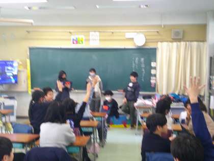 今日は2月のキッズタイムを行いました。今回の企画も5年生です。ドンじゃんけん、イントロクイズ、椅子取りゲーム、何でもバスケットなどなど、みんな楽しんでいました。ビンゴゲームでは、手作りの当選景品も用意してくれました。5年生のみなさん楽しい企画をありがとうございました。キッズタイムもあと3月で最後になってしまいますね。次回も1年生から6年生までみんなが笑顔になるとよいですね。