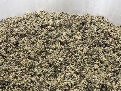 おからふりかけは、おから、ひじき、すりごま、青のり、粉かつお節を使って作りました。大豆をやわらかく茹でて、すりつぶして絞ったものが豆乳ですが、残ったものが「おから」です。大豆のたんぱく質や、食物繊維、カルシウムが多く含まれた食べ物です。おからは傷みやすいので、産業廃棄物として処分されることが多かったそうですが、最近は乾燥させて食品として流通したり、肥料にしたりして活用されています。