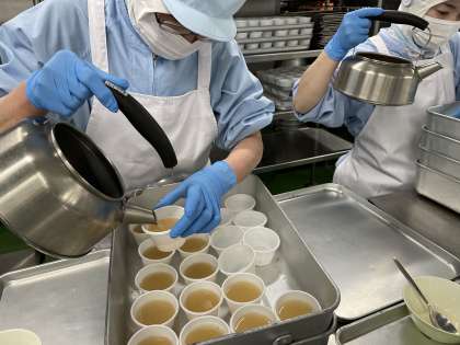 3月3日の日曜日は桃の節句「ひなまつり」の日です。一足早いですが、今日の給食はひなまつりお祝いメニューにしました。いろとりどりの具材がきれいに仕上がった「ちらしずし」に、桃の節句にちなんで「桃ゼリー」を作りました。