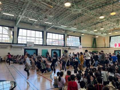 4年生は、今の6年生が以前に運動会で演技したダンスを元に感謝の気持ちを伝えました。社会科見学で行った思い出の場所のキャラクターに似たキャラも登場し、最後は6年生も一緒にダンス。会場がとても盛り上がりました。