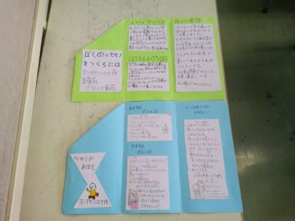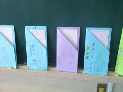 国語の時間に、おすすめの本のパンフレットを作成した5年生。とてもすてきなパンフレットが完成しました。後日その作品を2年生に見せに行きます。2年生は「ひろがれわたし」の学習で作成した「思い出アルバム」を5年生に見せてくれるそうです。交流当日が楽しみですね。