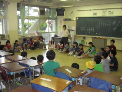 中休みの時間帯から3校時いっぱい、いろいろな学年の子どもたちが交流して遊んだり、次回の計画を確認したりするキッズタイムがありました。ハンカチ鬼などを楽しむことができました。高学年がリーダーシップを発揮し、楽しいひとときとなりました。