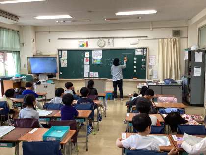 入学から5日目の1年生。教室に入って朝の準備をするのは本日で4回目ですが、もうすでに朝の学級活動の時間までにお支度が整っていました。スクールサポートスタッフの方、6年生の助けがあるにしても素晴らしいことですね。