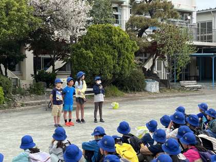 3、4年生のズーラシアへの遠足出発しました。出発式では4年生が進行してくれました。3、4年生一緒なので仲良くなりましょう。などと話してくれました。とても立派でした。安全に気をつけて行ってきます。