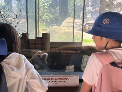 園内は広いですが、動物を発見した時はとっても嬉しそうです。探検隊ですね。