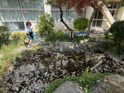 本校には2つのビオトープの池があります。自然のままにするのがビオトープですが、さすがに何もしないと行きもが住めない環境になってしまいます。環境委員さんが休み時間を使って水を足すなどの管理をしてくれています。温かくなり、オタマジャクシが泳いでいます。環境委員会のみなさんいつもありがとうございます。