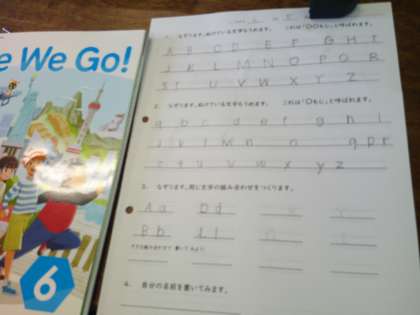 今日はアルファベットの大文字について学習しました。英語での会話だけではなく、writingも学習しています。みんな丁寧に書いて覚えていました。