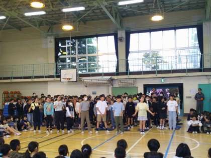 1年生は、ありがとうの気持ちを込めて「ドキドキドン!1年生」の歌を元気に歌いました。入学してまだ2週間でしたが、とても上手に歌えました。とても温かな雰囲気のすてきな会となりました。1年生を迎え661名全員でより良い学校にしていって欲しいと思います。司会や運営を中心となってしてくれた計画委員会のみなさんありがとうございました。1年生を温かく迎えてくれた上級生のみなさんもありがとうございました。