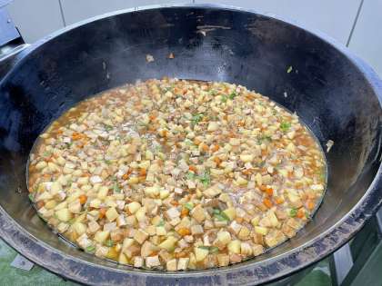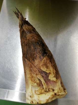 毎月19日は「食育の日」ということで、等々力小学校では毎月19日に、かみごたえのあるかむかむ献立の給食にしています。今日は、旬の筍を使った春野菜のうま煮、シャキシャキ歯応えの切り干し大根を使った和え物を作りました。筍は、今しか手に入らない生の筍を届けてもらい、ぬかと鷹の爪で煮て、アクをとるところから作りました。