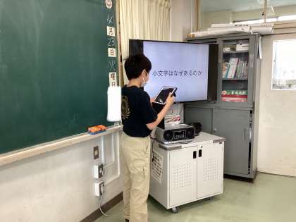 前回、大文字と小文字を学習したこともあり、「なぜ小文字ができたのか?」「ヘボン式文字の看板紹介」「自己紹介スピーチ」を自主学習として提出してくれた児童がいました。