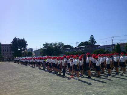 運動会へ向けて、紅白に分かれて整列する練習をしました。運動委員会のみなさんが丁寧に並び方や動き方の指示をしてくれました。運動委員会のみなさんありがとうございました。661名の全校児童が校庭いっぱいに広がると迫力があります。