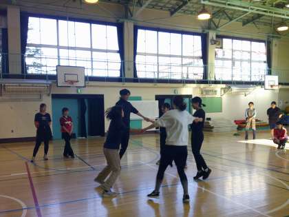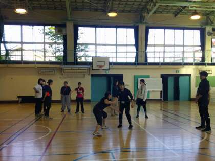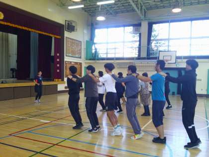 放課後の時間を使って、体育を専門とする教員を講師としてOJTミニ研修を行いました。テーマは「体ほぐしの運動」です。体育の時間の主運動に入る前などに活用できる楽しい動きを先生方で学び合いました。授業にすぐに活かしていきます。