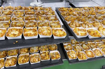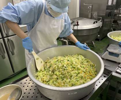 ポテトグラタンは、ひき肉と玉ねぎにんじんを炒めて作ったミートソースと、蒸したじゃがいもを合わせて、チーズをのせてオーブンで焼きました。春野菜のサラダには、アスパラガスを使いました。旬のアスパラガスは、太くて柔らかく、甘くて美味しいものが届きました。薄くスライスして、キャベツとコーンと一緒に茹でました。