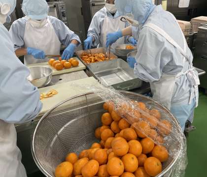 マーマレード焼きは、塩、こしょう、白ワイン、醤油、マーマレード、粒入りマスタードを混ぜ合わせて、鶏肉を漬け込んでオーブンで焼きました。とっても美味しく焼き上がりました。果物は、カラマンダリンです。温州みかんとマンダリンを掛け合わせて誕生したみかんです。