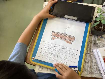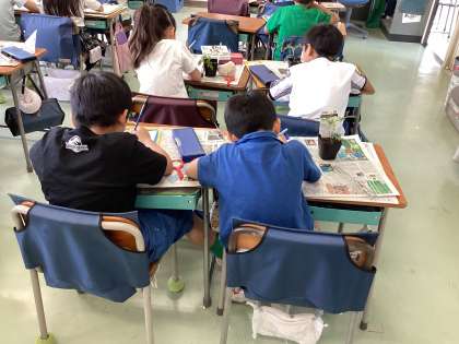 今回はミニトマトを育てることになりました。 まず、1年生の時に書いた観察カードのかき方を確認しました。