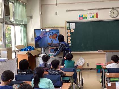 1年生の図書の時間では、司書の先生による読み聞かせが行われていました。