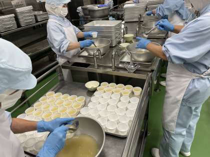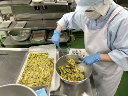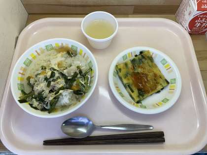今日はお隣の国、韓国の料理です。韓国語で「クッ」はスープのこと、「パフ」はご飯のことを表します。クッパは、スープの中にごはんを入れた料理です。チヂミは日本のお好み焼きを薄くしたような料理です。「チヂミ」は韓国の方言の言葉だそうです。一般的には「ジョン」というそうで、じゃがいものチヂミは、「カムジャジョン」というそうです。チヂミのタレも給食室特製です。あるクラスでは、ごはんにチヂミのタレをかけて食べている子もいたほど、美味しいタレが出来ました。ゼリーは、運動会の疲れを吹き飛ばしてくれるようなさっぱりとした「はちみつレモンゼリー」が出来上がりました。