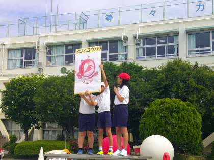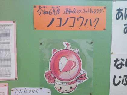 以前にお伝えしました各委員会の委員長による「委員会議」で、「運動会を盛り上げるために何かできないだろうか」と各員会で検討しました。その際に実施することが決まったマスコットキャラクターが完成し、全校練習の際にお披露目となりました。名前は「ノコノコウハク」。等々力小で飼育しているカメの「ノコノコ」をモチーフにしています。集会委員会さんが進めてくれました。4つの原画から全校アンケートをとり、「ノコノコウハク」に決まりました。そして、原画を元に、本校の図工専科がデジタル化した清書をしてくれました。「ノコノコウハク」もみんなを応援してくれて運動会がより盛り上がる取組となっています。