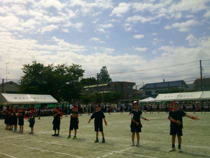 晴天に恵まれてスタートした運動会。一年生にとっては初めての小学校での運動会ですが、元気いっぱいに表現できました。応援合戦、3年生の表現も素晴らしかったです。
