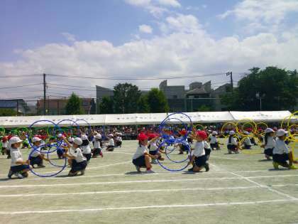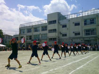 午後の部は応援合戦からのスタート。全校児童によるウェーブでも盛り上がりました。4年生のエイサー、2年生のフラフープを使った演技もバッチリでした!