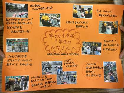 先日三島幼稚園・近隣保育園との交流会を行った一年生。今日三島幼稚園からそのお礼のお手紙が届きました。学校では一番年下の一年生ですが、この日はお兄さんお姉さんとなり頑張りました。その褒美ですね。月曜日に子どもたちに見せてあげます。
