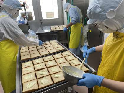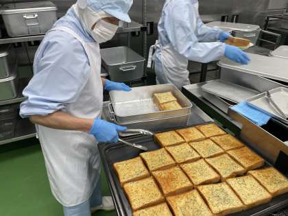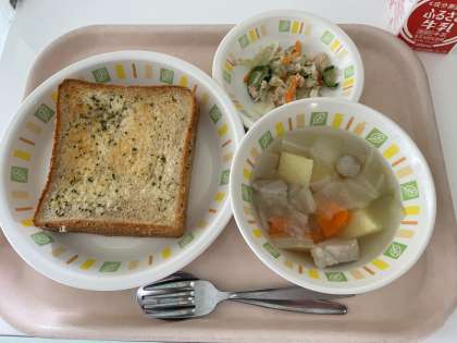 胚芽ガーリックトーストは、胚芽食パンにガーリックバターを塗ってオーブンで焼きました。バターとすりおろしたニンニクと、パセリ、粉チーズを混ぜ合わせて、ガーリックバターを作りました。