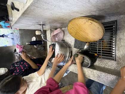飯盒炊飯、片付けも頑張りました。これからキャンプファイヤーです。