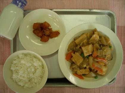 ごはん 牛乳 生揚げのみそ炒め じゃがいものチリソース