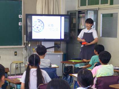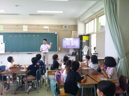 図工の学習では、出来上がった作品に対して、みんなで友達の作品のよいところを書き、作品交流をしました。外国語活動では、ALTの先生と楽しく英会話や歌を歌いました。総合的な学習の時間の学級では、食育の学習。本校の栄養士を講師として、等々力小学校の給食ができるまでを教えていただき、思ったことや考えたことを交流し、生活に活かしていく学習を行いました。