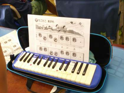 ドレミを覚え始めたばかりの1年生、鍵盤ハーモニカを使って「たこたこあがれ」を演奏しました。講師の先生と楽しく音楽の学習をしています。