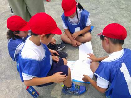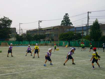 今年度等々力小学校は、世田谷区のドリームパートナースクールの研究奨励を受け、体育科について研究しています。今日は2年生で校内研究の研究授業を行いました。今年度は「運動に主体的に取り組む児童の育成〜自己の高まりを実感できる指導の工夫〜」を研究主題として、校内研究を行っています。2年生が挑戦している活動は、鬼遊び「おにをかわしてかけぬけろ!レッツ とレジャーハンティング」。みんなで作戦を考え、楽しみながら鬼遊びをしました。