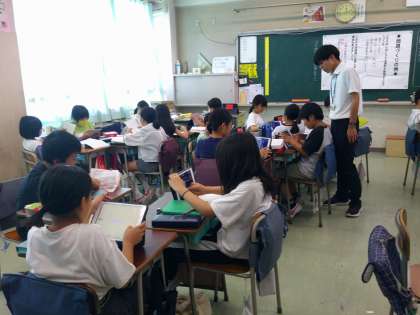 同訓異義語、同音異義語を学習してきた5年生。今日はそれを使って、問題を作り出し合いました。