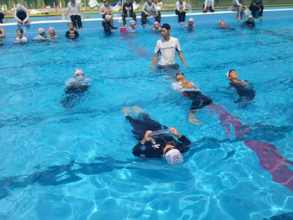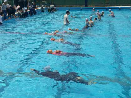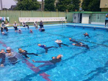 今日は6年生が水泳の時間を使って、着衣泳を行いました。服を着た状態での泳ぎ難さを体験し、その後背浮きをしたり、陸上にいる人から救助用のペットボトルを投げたり、ペットボトルにつかまって浮いたりしました。事故が起こらないことが一番ですが、万が一のために真剣に取り組むことができました。他の学年も順次行っていきます。