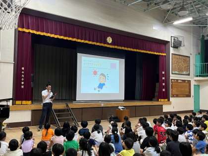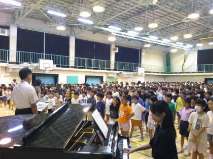 全員で校歌を斉唱し、生活指導主任から夏休みの生活についてお話しました。「大ピンチずかん」をもとに、夏休みに気を付けて生活してほしいことをお話しました。大ピンチにならないように、各ご家庭でも十分に話し合ってください。