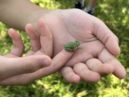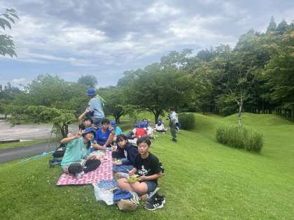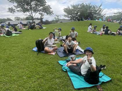 大谷川公園に到着して、待ちに待ったお弁当タイム。みんな笑顔で美味しいお弁当を食べました、朝早くからの準備ありがとうございました。公園はカエルやトンボもたくさんです。