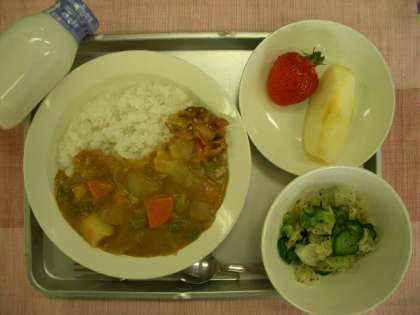 毎月1回は登場するカレー。今日は今年度最後のカレーの日でした。