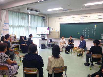 元等々力小学校で勤務されていた、中楯浩太先生、田内利美先生、小甲圭悟先生を講師にお迎えして、「Well‐Beingって?」というタイトルで校内研修会を行いました。中楯先生は現在、株式会社steAmや自分軸メンタルコーチなどでご活躍されています。Well‐Beingの基本的な考え方から、教育の本質までを対話形式で考えていきました。中楯先生が最後にお話しされた、