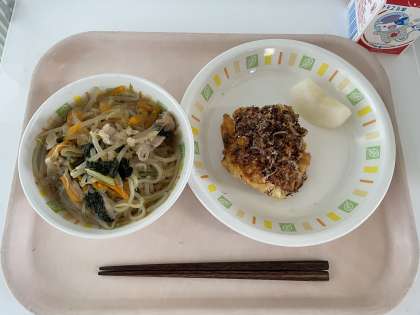 たこぺったんは、世田谷区のお隣の区、大田区の学校給食発祥のメニューです。等々力小学校では、昨年に引き続き2回目の登場です。ラーメンもたこぺったんも大人気のメニューです。等々力小には、どんぶりのような大きな深いお皿がないので、ラーメンのような料理は、一人分を盛り付けると山盛りになってしまいます。盛りきれなかった分をおかわりするために、長い行列が出来ているクラスもありました。給食室では大忙しの日でしたが、子どもたちが美味しい!と言ってたくさん食べてくれたので疲れも吹き飛びました。
