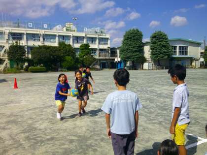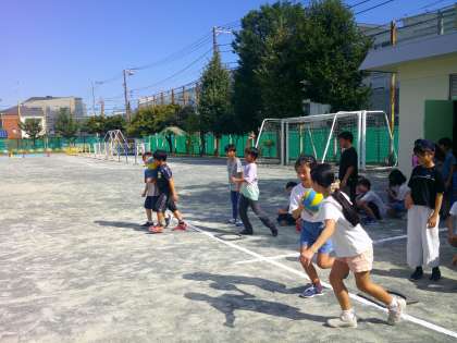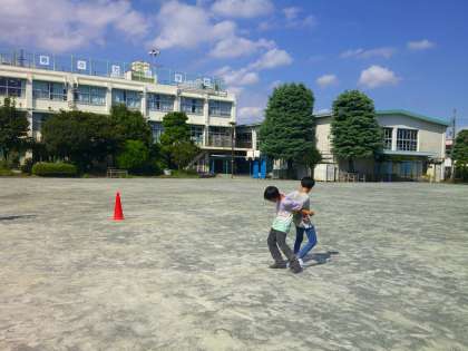 10月12日(土)に予定している3年と行うスポーツフェスティバルへ向けて、4年生がいろいろと試してみてくれていました。2人でボールを運ぶ競争の運び方をそれぞれのペアで考えました。背中合わせ、片方の手でボールを挟んで、肩と頭で押さえて…。どんな競技になるのか本番が楽しみです。