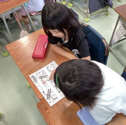2学期に入り、1回目の外国語の授業ではまず、夏休みに出かけた場所について質問がありました。その後、「Waht do you like?」をつかい、どんなスポーツが好きかを質問し合いました。オリンピックの影響もあり、色んなスポーツが発表されました。楽しく活動できました。