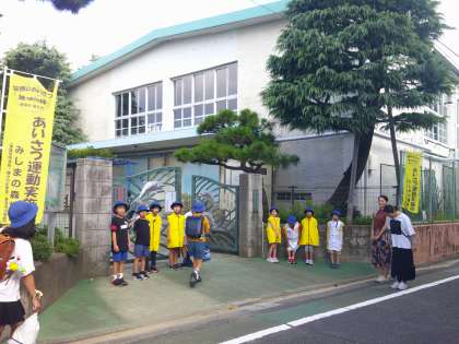 今日から9月のあいさつキャンペーンが始まりました。担当は2年生です。2年生らしいすてきなあいさつをしてくれました。2年生のみなさんありがとうございました。ご参加いただきました、PTA役員のみなさま、おやじの会のみなさまもありがとうございます。