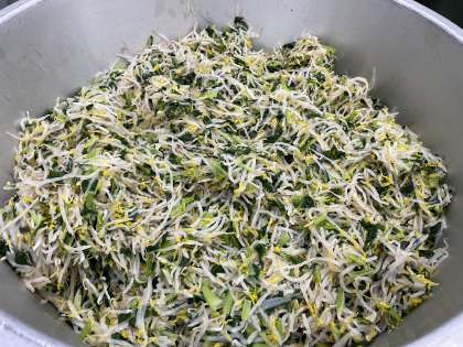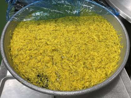 今日は9月9日、重陽の節句ということで、菊の花を使ったおひたしを作りました。菊の花は、乾燥させた干し菊を届けてもらい、水で戻して、野菜と一緒に茹でました。鮮やかな黄色が、目でも味わえるおひたしが出来上がりました。