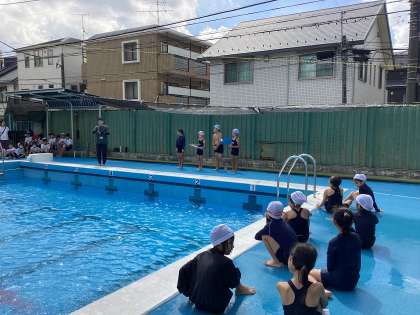 今年度最後の水泳学習でした。検定を受ける人、復習をする人など、自分で目標を決めて取り組む姿が立派でした。まとめの会では、代表児童が発表をしました。安全に学ことができました。3年生でも新たな目標を立てて頑張りましょう。