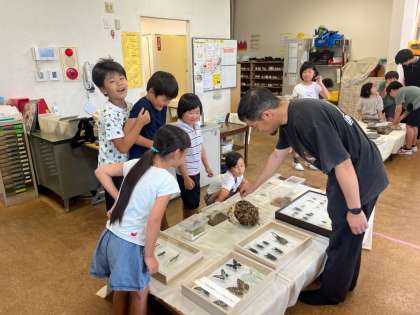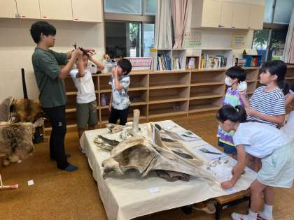 今日3年生は、体験型移動博物館で学習しました。会場としてお借りしたBOPの1階が素晴らしい博物館に!たくさんの展示物を運んでいただき準備や講師をしてくださったのは、NPO法人Science and Artのみなさんです。テーマは、植物、鉱物、動物、砂(顕微鏡で観察)、化石、昆虫の6つ。大きなクジラの骨からアンモナイトの化石まで、実際に手に取って観察してよい展示ばかりで、子どもたちは大興奮でした。ぜひ本物を見た感想はおうちでたくさん聞いてあげてください。NPO法人Science and Artのみなさま本当にありがとうございました。