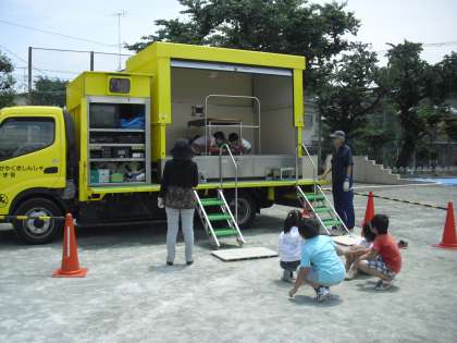 6月7日、避難訓練を行いました。今日の想定は、休み時間中の地震と地震後の火災です。避難後は世田谷区の起震車体験を3年生全員が行いました。