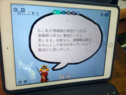 みんなで作った鎌倉時代についての問いを解決するために調べてきました。今日はその調べたことをグループごとに交流し、その時代の特徴について理解を深めていきました。自分だったらこの時代、源頼朝の政治はいいと思うな。私は嫌いだな…。意見は分かれていて議論を深めていました。
