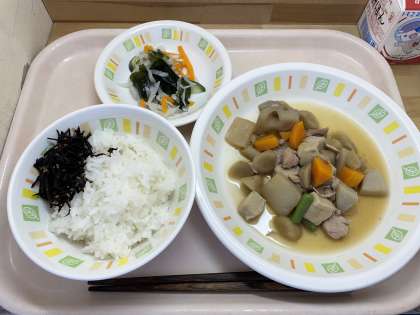 今日は和食の献立でした。鶏肉と野菜のうま煮は、野菜をそれぞれ下茹でして、味がよく染み込むように煮ました。ひじきのふりかけは、調味料とひじきを煮てごまと鰹節を合わせて、炒りつけて作りました。和食の日は、残りが多くなりがちです。今日も酢の物、煮物に苦戦している人が多かったです。