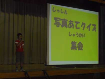 集会委員会による「写真あてクイズ」という写真に写っているものが何かを当てるゲーム集会が体育館で行われました。意外なもの、難易度の高いものをあてた時の歓声は大きく、盛り上がりました。