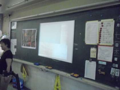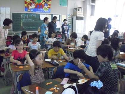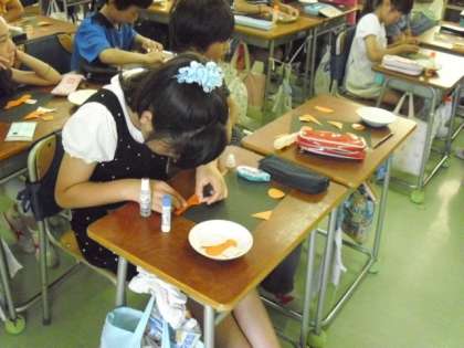 美術鑑賞教室の事前授業ということで、世田谷美術館より学芸員の方が指導に来てくれました。「こうしたらいいかな」「うーん、これでいこう」試行錯誤の結果、芸術作品が完成です。
