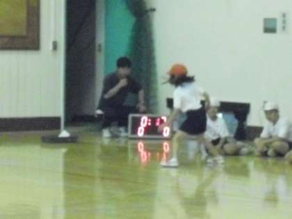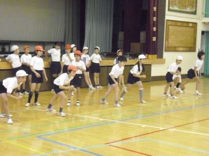 運動会が終わり、新体力テストが始まりました。写真は、4年生が体育館で取り組んでいる様子です。